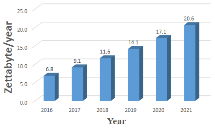 Selon Cisco, le trafic des datacenters dans le monde a dépassé les 20 zettaoctets en 2021 et la croissance exponentielle se poursuit.